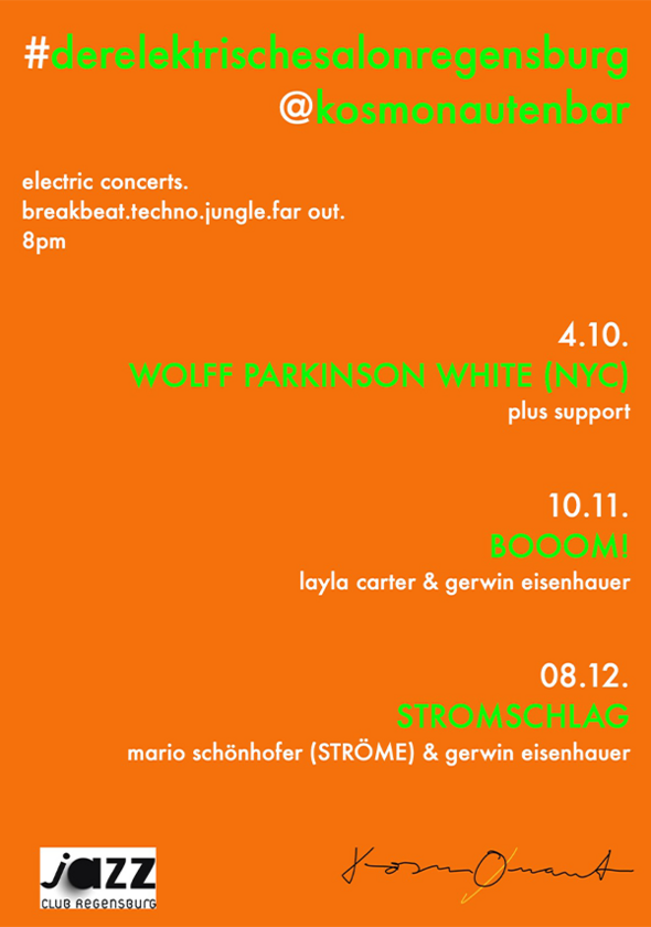 Kuratiert von dem Regensburger Schlagzeuger Gerwin Eisenhauer in Zusammenarbeit mit dem Jazzclub Regensburg finden die Konzerte monatlich an unterschiedlichen Tagen in der intimen Atmosphäre des KOSMONAUT in der Goldenen Bärenstrasse 10 um jeweils 20.00 Uhr statt.