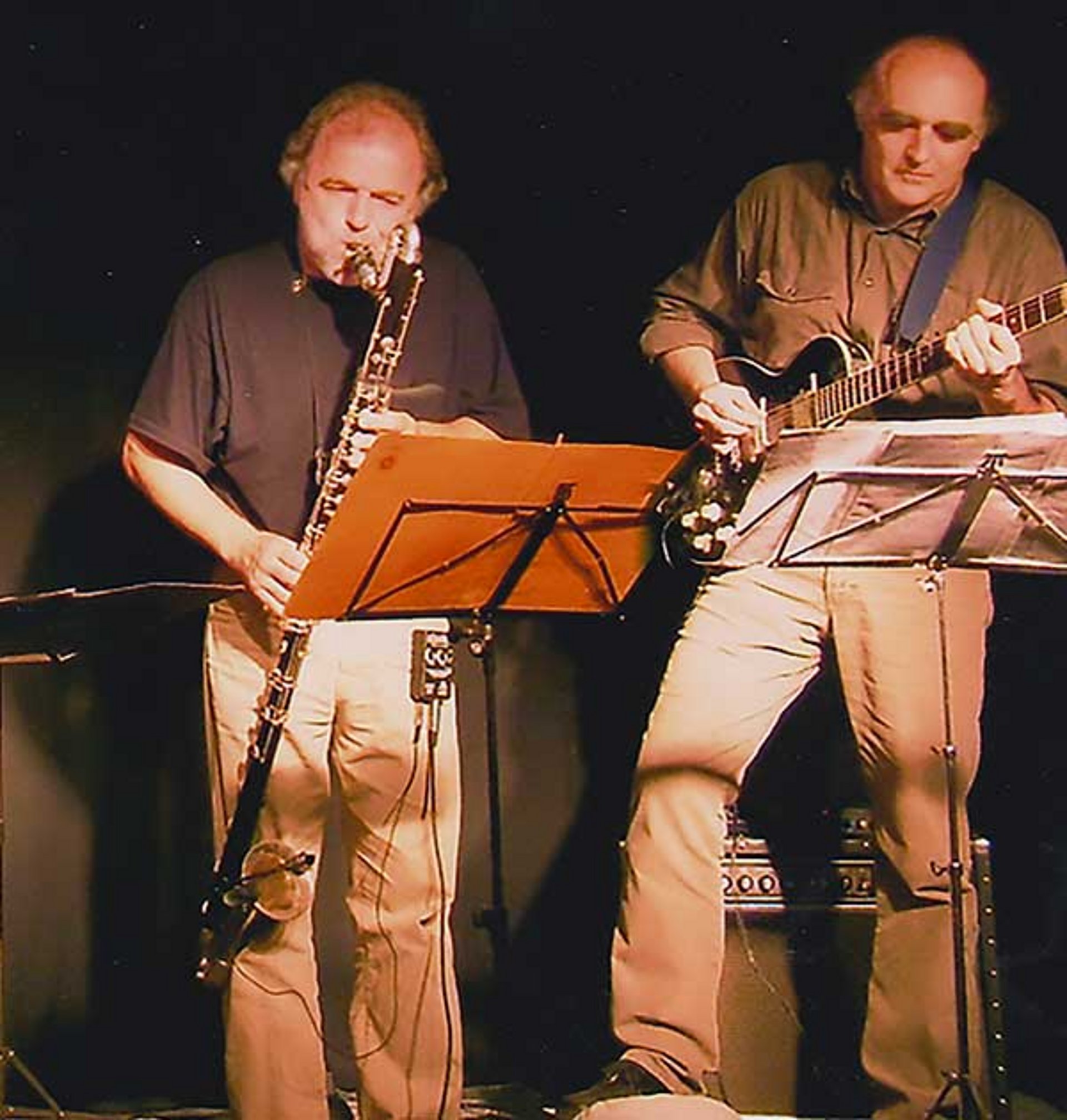 Helmut „Joe“ Sachse (*1948 in Mittweida), entstammt musikalisch der ostdeutschen Jazzszene, mit deren Vertretern er fast ausnahmslos zusammenspielte. Darüber hinaus trat er mit anderen internationalen Musikern auf: Carmell Jones, Leo Wright, Mighty Flea Conners, Charlie Mariano, John Tchicai, John Marshall, David Moss, Peter Brötzmann, Tony Oxley, Jack Bruce, Han Bennink und Albert Mangelsdorff. Ab den 90er Jahren begann er Standards auch aus der Rockmusik zu übernehmen. Seine charakteristische Spielweise brachte ihm Etikettierungen wie „Jimi Hendrix der Jazzgitarre“, „Hohepriester“ oder „Hexenmeister“ der Elektrogitarre ein. Die Frankfurter Rundschau schließlich kürte ihn zum „Größten unbekannten Gitarristen Deutschlands“. 1990 wurde seine zweite Soloplatte mit der „Goldenen Amiga“ ausgezeichnet. Der 1952 in Thüringen geborene Heiner Reinhardt studierte an der Musikhochschule „Hanns Eisler” in Berlin Saxophon. Danach wirkte er im Andreas-Altenfelder-Quintett und ist seit den achtziger Jahren ständiges Mitglied des Manfred-Schulze-Bläserquintetts. Später arbeitete Heiner Reinhardt mit seinem eigenen Ensemble "Entropie", wirkte in vielen Workshop–Formationen mit und sammelte Erfahrungen in verschiedenen Performance- und multimedialen Projekten. Er ist Mitglied des in den neunziger Jahren gegründeten Berliner Bläserensembles „Talam” unter Leitung Gebhard Ullmanns. Seine ausgedehnte Konzerttätigkeit machte ihn bekannt mit den führenden Musikern der europäischen Improvisationsszene, er spielte auf vielen namhaften Jazzfestivals in Europa und Amerika, darunter auf dem Jazz Fest Berlin, in Nürnberg, Moers, Le Mans, Vancouver, Toronto, Nickelsdorf und zu den Salzburger Festspielen.