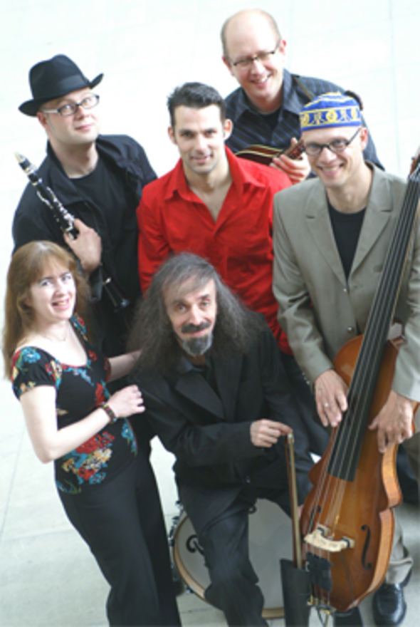 Das internationale All-Star-Sextett aus Deutschland, Moldawien und England vereint einige der besten Klezmermusiker Europas und erschafft neue Klangdimensionen der jiddischen Musik. Nach monatelanger Deutschland-Tournee präsentiert das Ensemble nun sein im Herbst 2007 veröffentlichtes Debüt-Album „Mir Basaraber“: Neue jiddische Lieder, alte rumänische und moldawische Melodien und fetziger Klezmer bilden eine tanzbare, kochende, vor Temperament überschäumende Einheit. Der charismatische Sänger Efi m Chorny aus Kishinev, Moldawien, ist einer der wenigen, der neue jiddische Lieder komponiert, Lieder, die humoristisch zum Mitsingen und Mittanzen auffordern. Für letzteres sorgt Andreas Schmitges, Europas wohl renommiertester Klezmertänzer, der sowohl auf seinen Instrumenten als auch mit dem Publikum zu der groovenden und originellen Musik tanzt. Die Leidenschaft, mit der die virtuosen Musiker ihre Begeisterung für jiddische Musik, Sprache und Tanz ausleben, ist ansteckend. Lassen auch Sie sich vom Feuer dieser jiddischen Kultkombo infizieren!