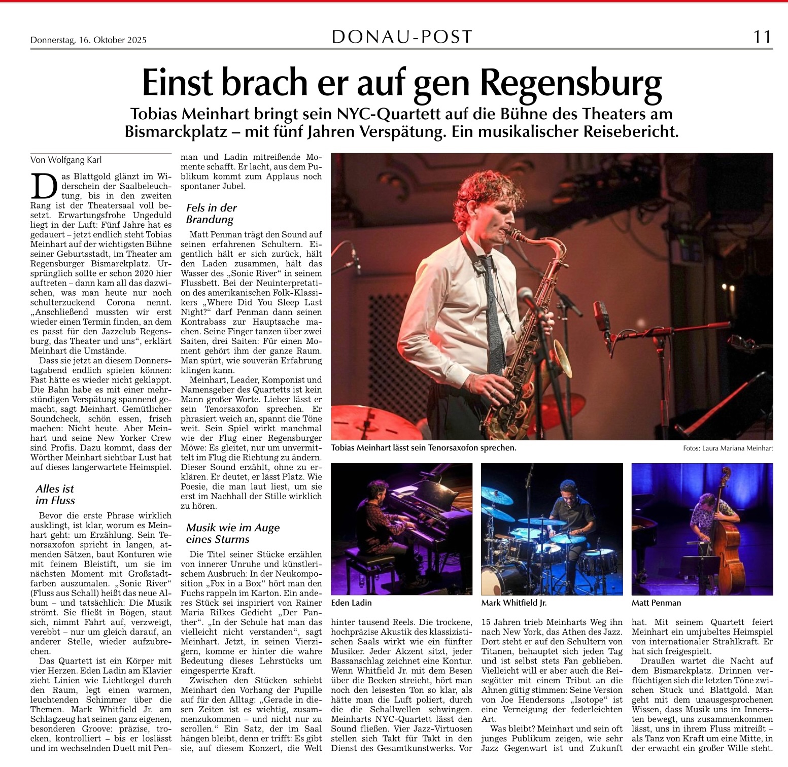 Konzertbesprechung Tobias Meinhart NYC Quartet in der Mittelbayerischen Zeitung vom 11.10.2025